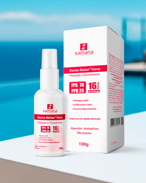 Composto por ingredientes que uniformizam o tom da pele, Dermo Melan Force fps 70 atua na proteção multifuncional da pele, para prevenir o surgimento de hipercromias faciais. Conta com uma alta tecnologia: 16 horas de proteção uva/uvb. Excelente produto para todos os tipos de pele, com um toque seco de rápida absorção.